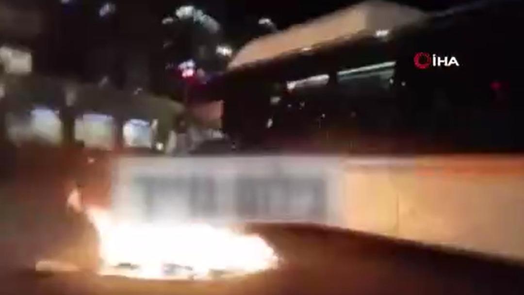 Çevredekiler tarafından kaydedilen görüntülerde, göstericilerden birinin otobüsün altında kalarak metrelerce sürüklendiği görüldü.
