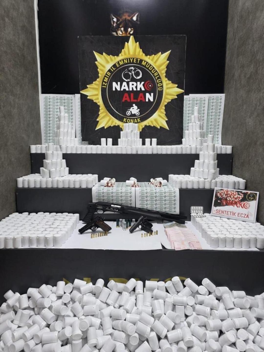 Adreslerde yapılan aramalarda 108 bin 472 adet sentetik ecza, 1 adet pompalı tüfek ve tüfeğe ait 9 adet dolu kartuş, 2 adet ruhsatsız tabanca, şarjörler ve çok sayıda fişek ile suçtan elde edildiği değerlendirilen 75 bin 100 TL nakit para ele geçirildi. Operasyonda N.P. (28), F.B. (29) ve N.K. (41) isimli 3 şüpheli yakalanarak gözaltına alındı. Yapılan sorgulamada şüphelilerden birinin kesinleşmiş hapis cezası ile arandığı tespit edildi. Şüpheliler hakkında adli işlem başlatıldığı öğrenildi.