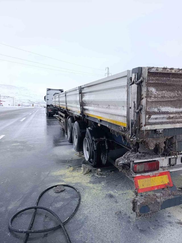 Edinilen bilgiye göre olay, Van-Erciş kara yolunun 75’inci kilometresinde meydana geldi. Sürücüsünün ismi öğrenilemeyen tır seyir halindeyken balatalarının aşırı ısınması sonucu lastikler alev aldı. Diğer sürücülerin ikazı üzerine sürücü tırı yol kenarına çekerek itfaiye ekiplerine haber verdi. Kısa sürede olay yerine giden Muradiye İtfaiye Grup Amirliği ekipleri, yanan lastikleri söndürdü.