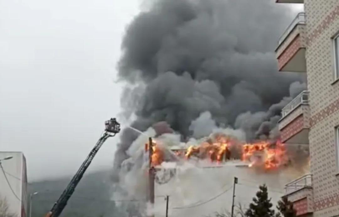 Yoğun duman oluşan yangına, ekiplerin müdahalesi sürüyor.