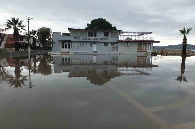 Öte yandan Madra dağından doğan Karınca deresinden gelen sel suları Ören sahilinde denizin rengini değiştirdi.