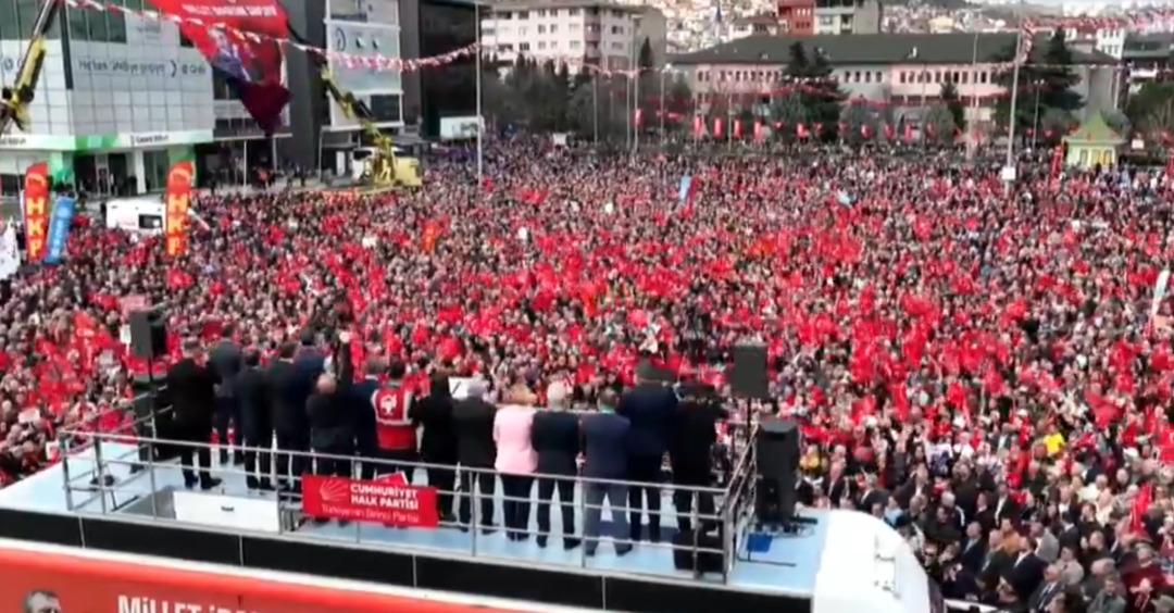 “Emeğin başkentinde, alın terinin başkentinde, dayanışmanın, kardeşliğin başkentinde bu güzel meydanı saygıyla selamlıyorum, hepiniz hoş geldiniz. Kocaeli’nin, canım Kocaeli’nin yeşiline merhaba, denizine merhaba. Bu meydanı dolduran; her görüşten ama iradesine sahip çıkan, seçtiğine sahip çıkan, sandığa sahip çıkan, haktan, hukuktan, adaletten yana olan Kocaeli’nin bütün demokratlarına merhaba.