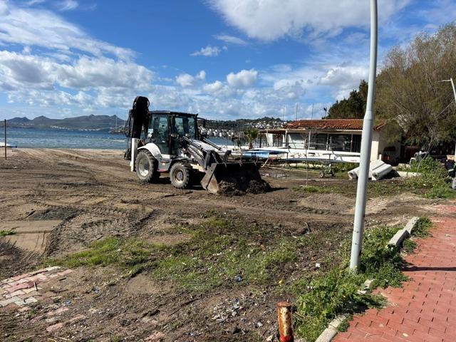 Sahil şeridi, yürüyüş yolları ve sahile çıkan ara sokaklarda temizlik ve yıkama çalışmalarının yanı sıra yol ve sahil düzenlemeleri de yapıldı. Yağışın yoğun olarak hissedildiği bölgelere öncelik veren ekipler; Kumbahçe Cumhuriyet Caddesi, Gümüşlük sahili, Yalıkavak Plaj Caddesi ve Bitez Mahallesi sahil şeridinde yoğun mesai harcadı.