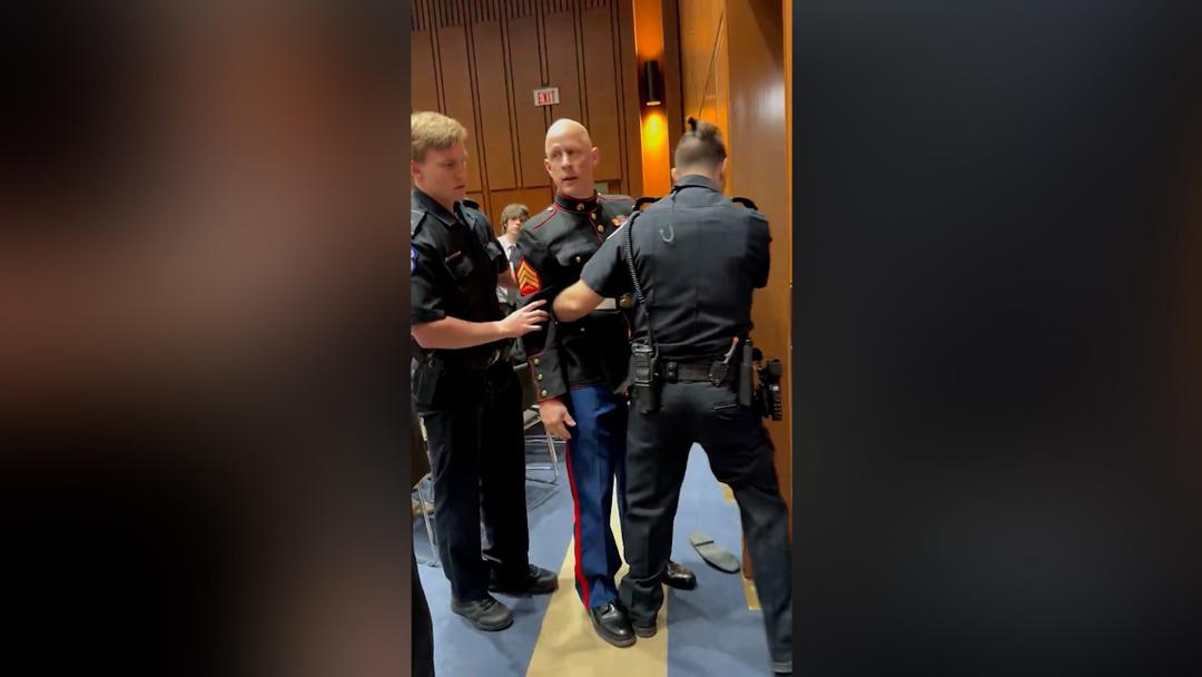 Polis, İran’a saldırıları Kongre binasında protesto eden eski Deniz Piyade Çavuşu Brian McGuinness’i gözaltına almaya çalışırken kolunu kırdı. Barış yanlısı ABD’li “CodePink” grubunun sosyal medya hesaplarından, McGuinness’in ABD Kongresi’ndeki toplantı odasından iki güvenlik görevlisi tarafından zorla çıkarılmaya çalışılmasına ilişkin görüntüleri paylaşıldı.