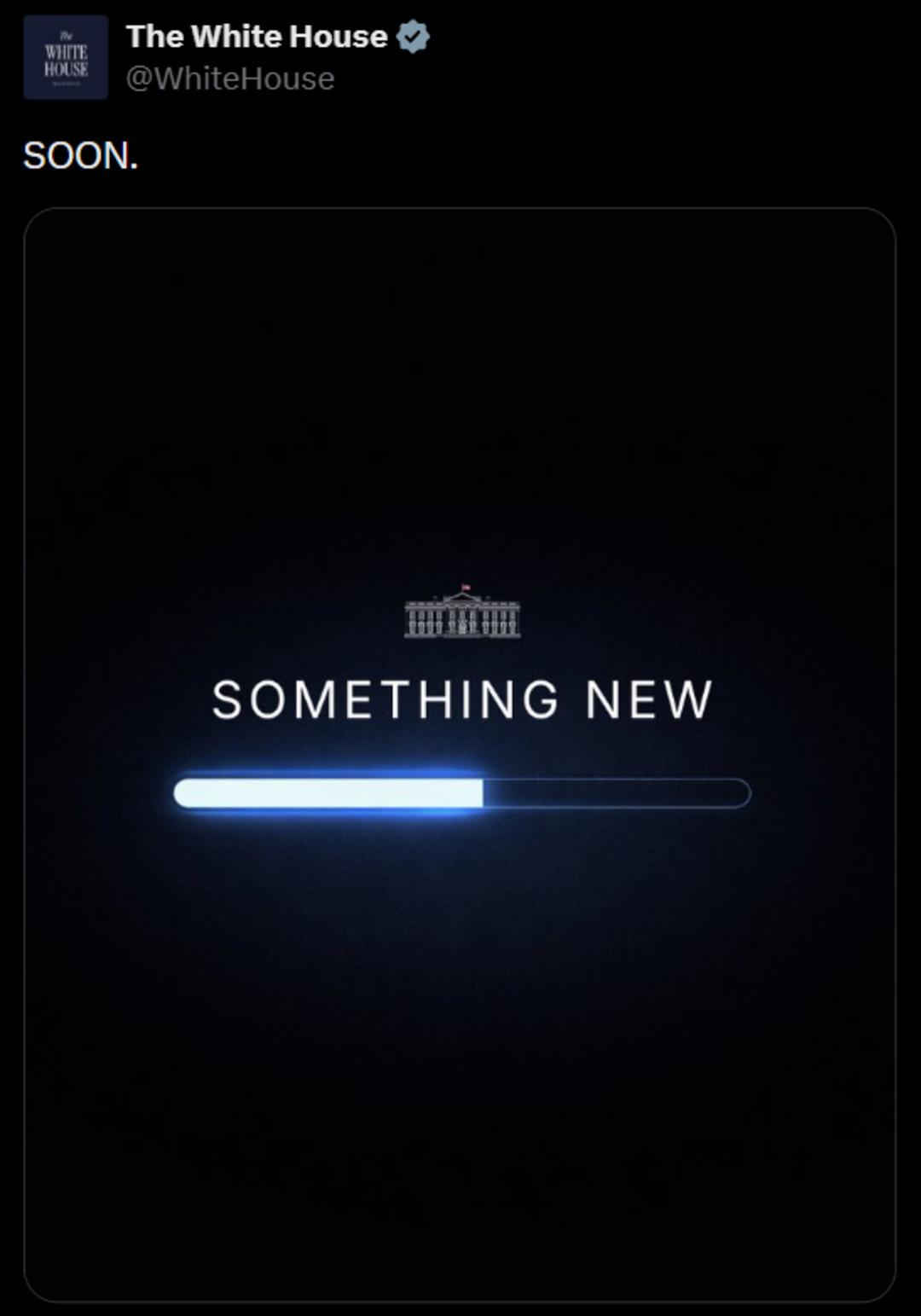 İlerleyen saatlerde Beyaz Saray resmi sosyal medya hesabından yapılan bir başka paylaşım soru işaretlerini beraberinde getirdi. Yapılan paylaşımda “Yakında, yeni bir şey” sözlerine yer verilirken, bir sürecin tamamlanmak üzere olduğuna dair simge görselde yer aldı.