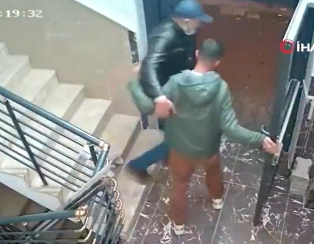 Öte yandan, saldırı anı da apartmanın güvenlik kamerası tarafından kaydedildi.